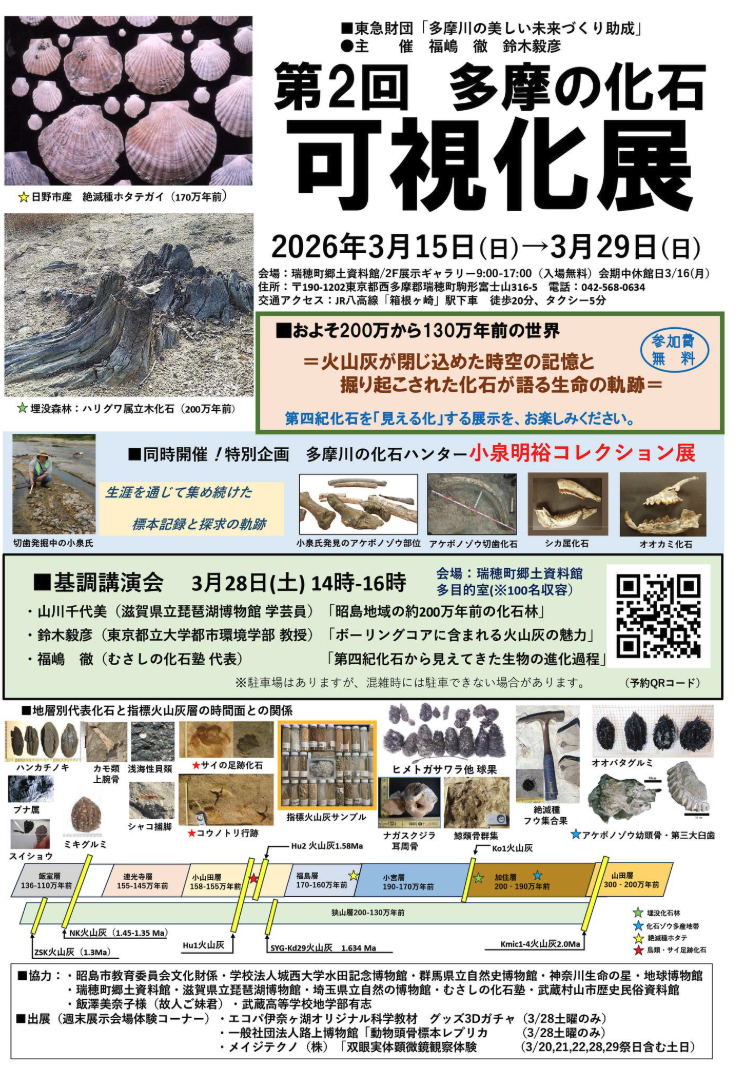 イベント2026.03.19広報 イベント出展:化石可視化展イベント ツイート シェア はてブ 送る Pocket 路上博物館で化石可視化展イベントに出展します。 詳細は主催者のSNSをご確認ください。 むさしの化石塾 ツイート シェア はてブ 送る Pocket